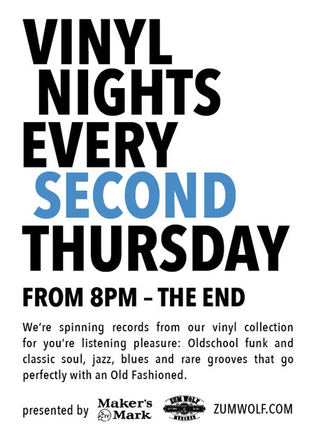 We love to create the perfect blend of drinks, sound and atmosphere – and vinyl will always be the best way to enjoy the music we are living for. Every second Thursday* we are spinning records from our collection for your listening pleasure. Think classic and modern soul, funk, r&b, jazz, blues and rare grooves that go perfectly with an Old Fashioned. Zum Wolf Vinyl Nights are presented by Maker’s Mark.